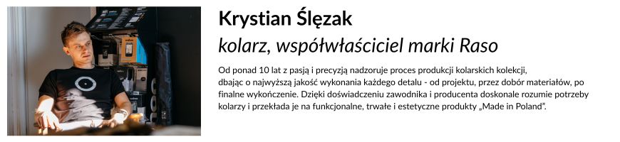 „To nie jest tylko marketingowy slogan - wszystko tworzymy od zera w Polsce. Nie korzystamy z gotowych szablonów z Azji. Każda linia odzieży to nasza praca, testowana przez kolarzy i dopracowywana w detalach.”