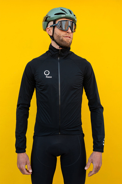 Funkcjonalny krój sprawia, że kurtka dobrze dopasowuje się do sylwetki, zapewniając pełną swobodę ruchów. Elastyczne taśmy przy rękawach zapobiegają ich podwijaniu się i nie powodują otarć, a elastyczna taśma w dolnej części panelu przedniego stabilizuje kurtkę podczas jazdy. Dzięki temu model ten sprawdza się jako uniwersalna kurtka rowerowa, odpowiednia zarówno na szosę, jak i jazdę w terenie. Wysoka stójka skutecznie chroni szyję przed chłodem, wiatrem i wilgocią, zwiększając komfort w trudniejszych warunkach pogodowych. Wydłużony tylny panel zabezpiecza przed zachlapaniami, co czyni kurtkę praktycznym wyborem również jako kurtka przeciwdeszczowa do jazdy w terenie.